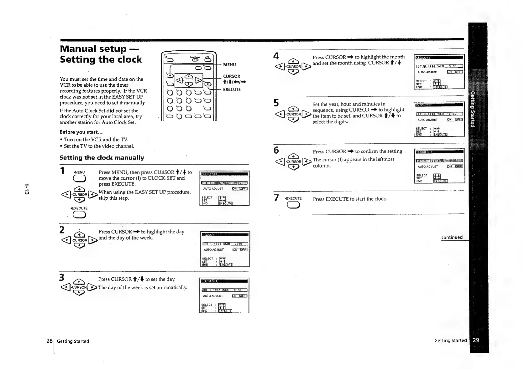 Sony SLV-E811NP - Setting the Clock Manually