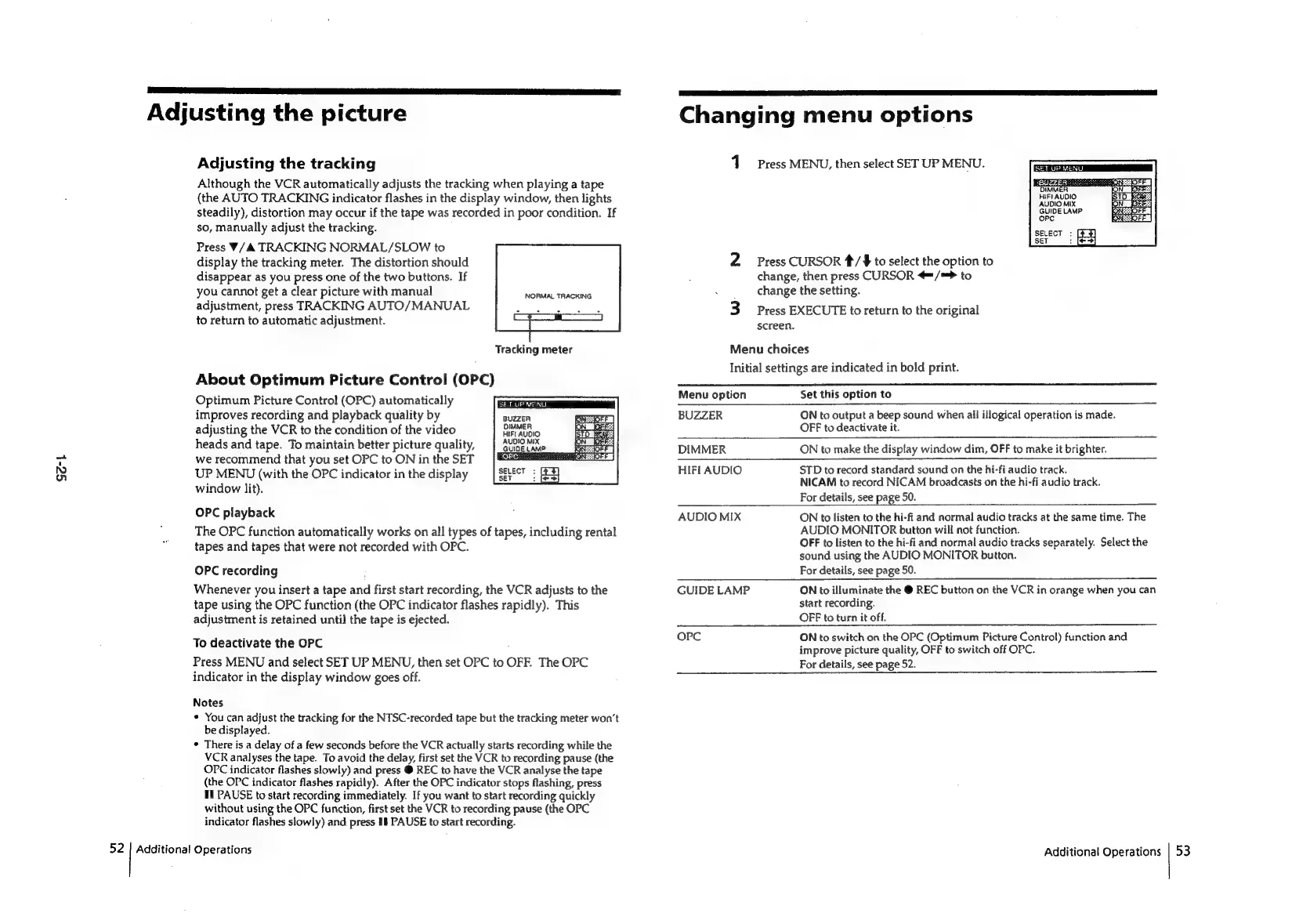 Sony SLV-E811NP - Adjusting the Picture; Changing Menu Options; Adjusting the Tracking