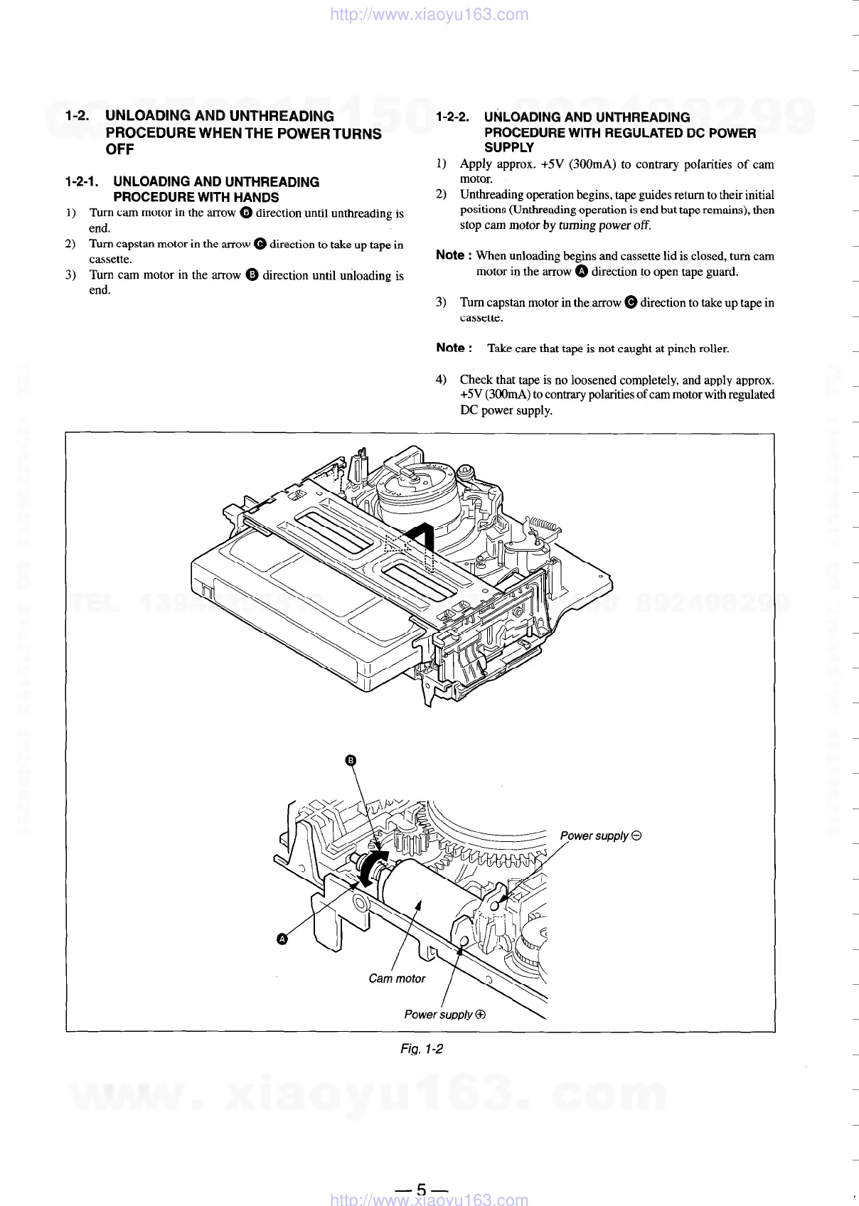Sony SLV-ED40PS - 1-2. UNLOADING AND UNTHREADING PROCEDURE WITH HANDS; 1-2-2. UNLOADING AND UNTHREADING PROCEDURE WITH REGULATED DC POWER SUPPLY