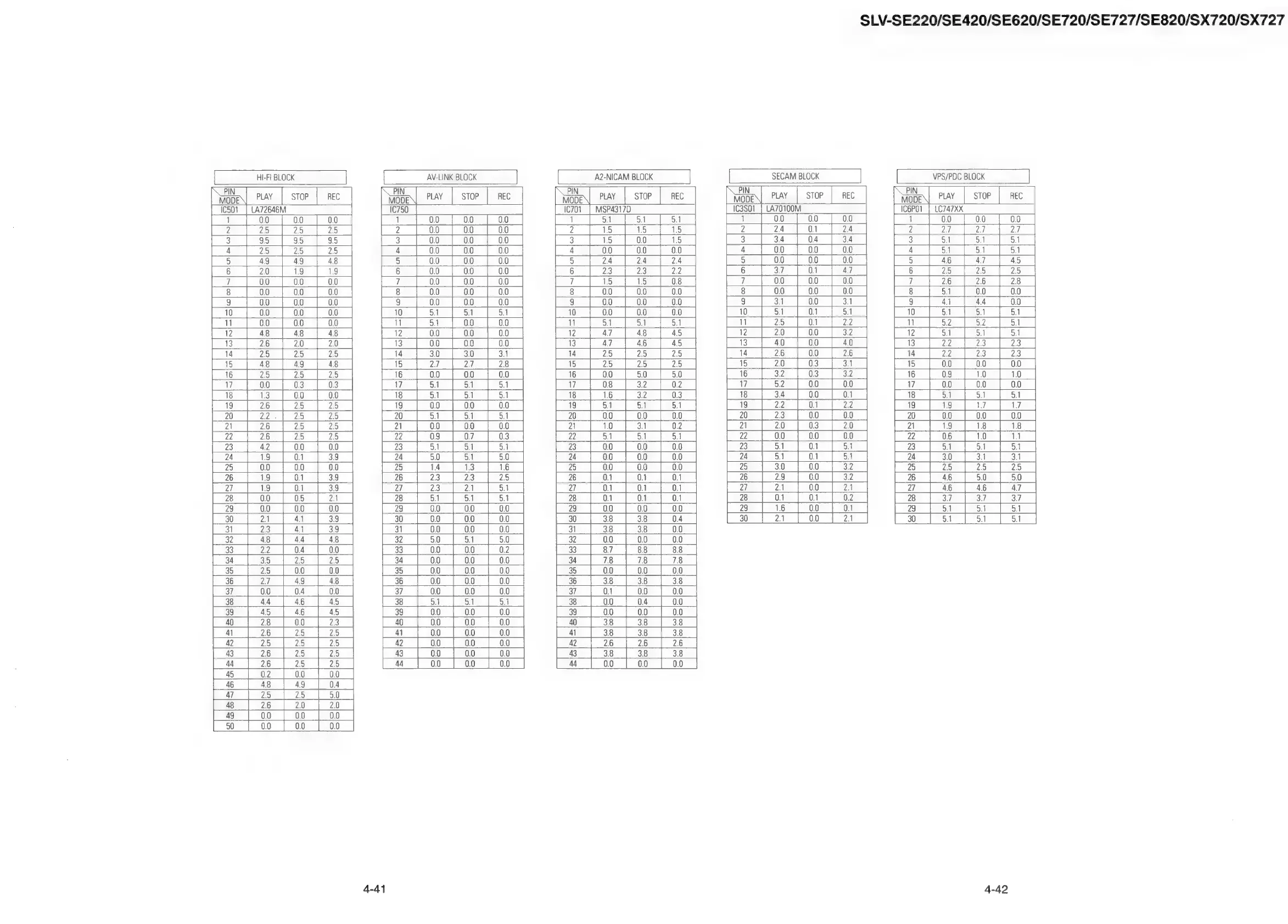 SLV-SE220/SE420/SE620/SE720/SE727/SE820/SX720/SX727
