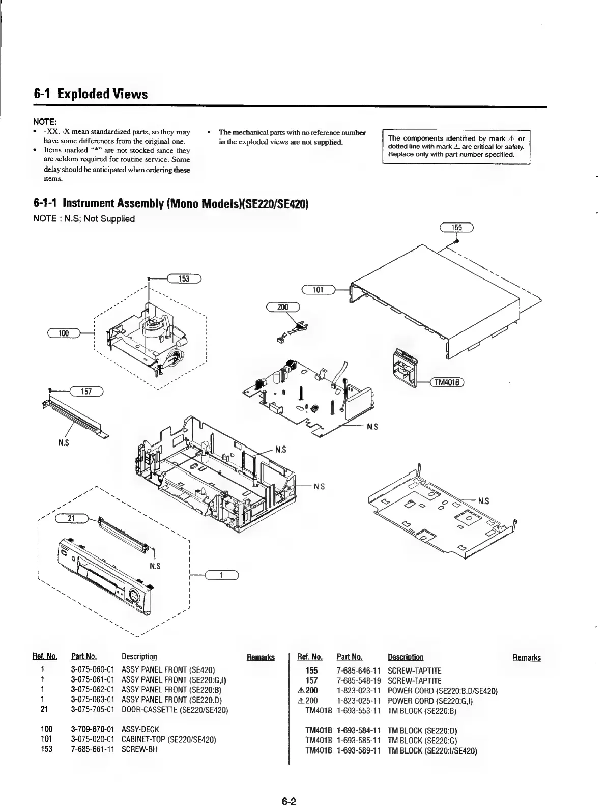 Sony SLV-SE620 - Instrument Assembly (Mono Models)(SE220;SE420)