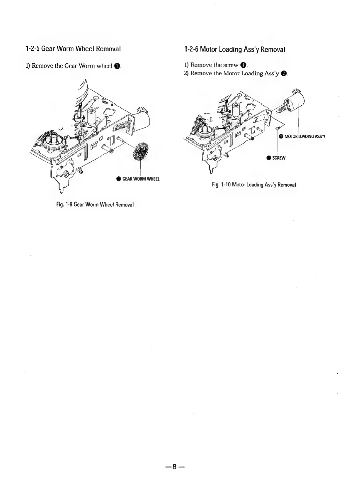 Sony SLV-SE620 - Gear Worm Wheel Removal; Motor Loading Assy Removal