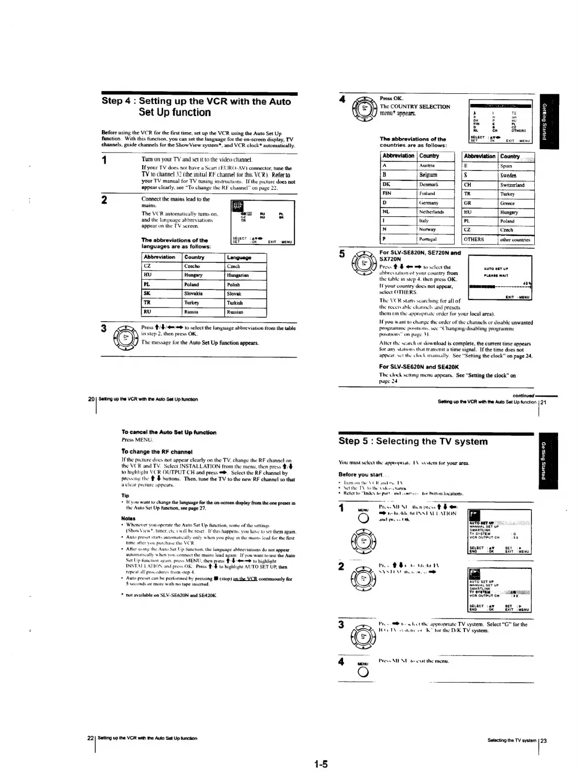 Sony SLV-SE620 - Step 4: Auto Set Up Function; Step 5: Selecting the TV system
