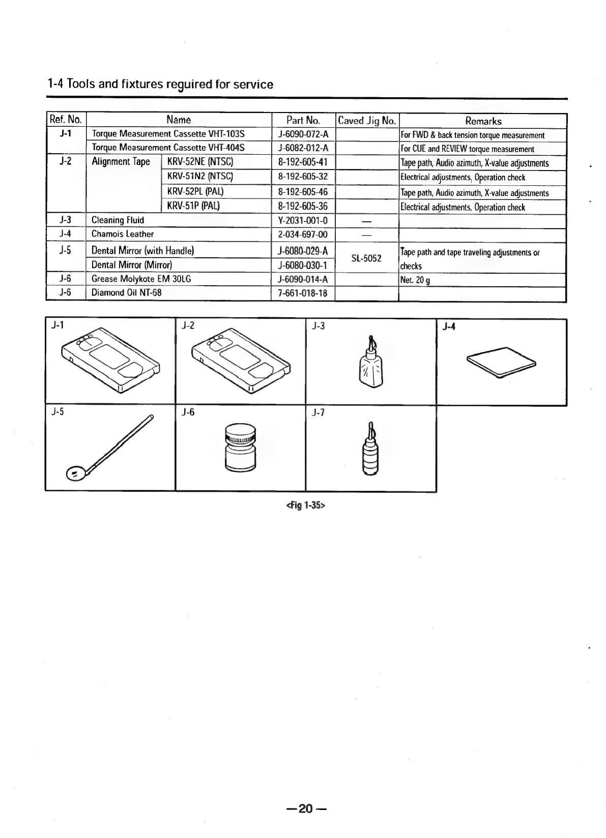 Sony SLV-SE620 - Tools and Fixtures Reguired for Service