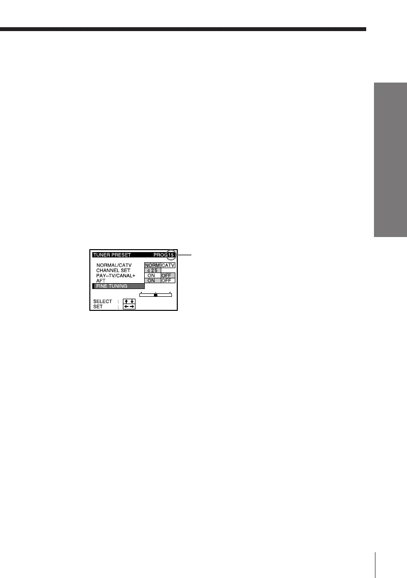 3 Select FINE TUNING. The fine tuning meter appears.
