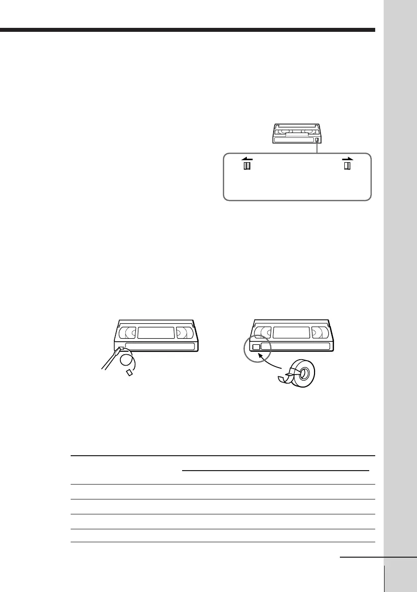 To record on a tape with its safety tab removed, cover the tab hole.