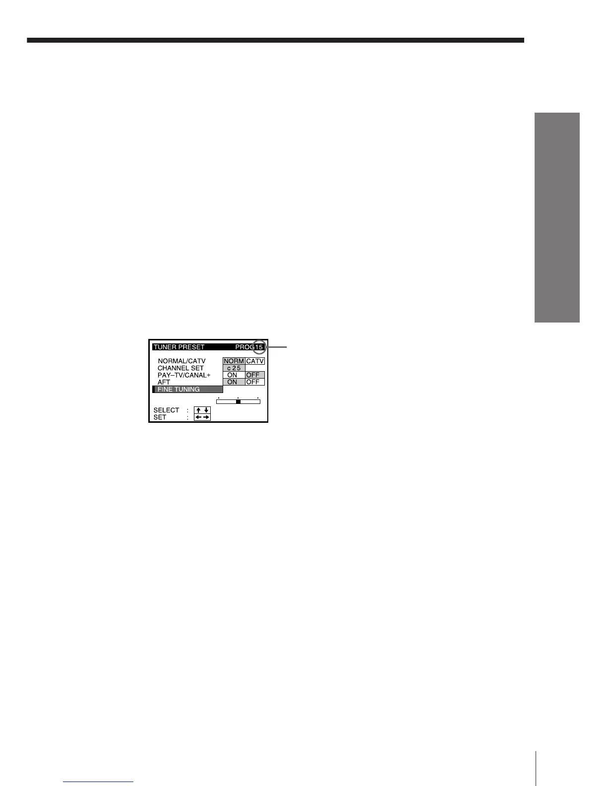 3 Select FINE TUNING. The fine tuning meter appears.