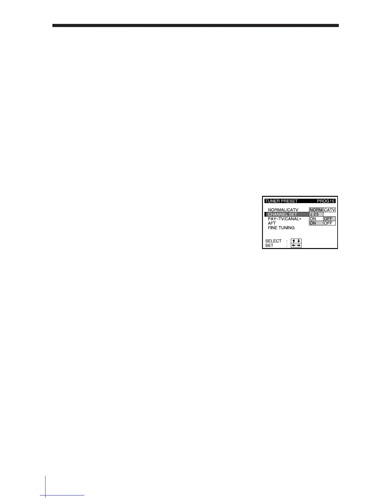 4 Select CHANNEL SET, then press CURSOR