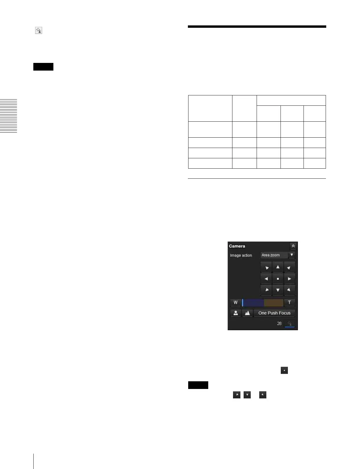There are three modes of camera operation: Area zoom