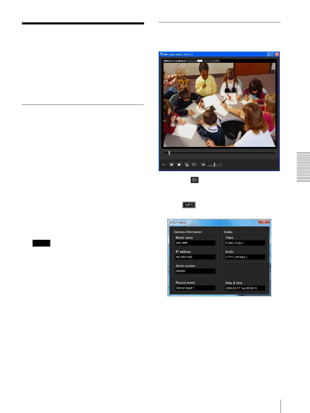 Using the SNC video player — Playing a Video/Audio File Recorded with the Camera