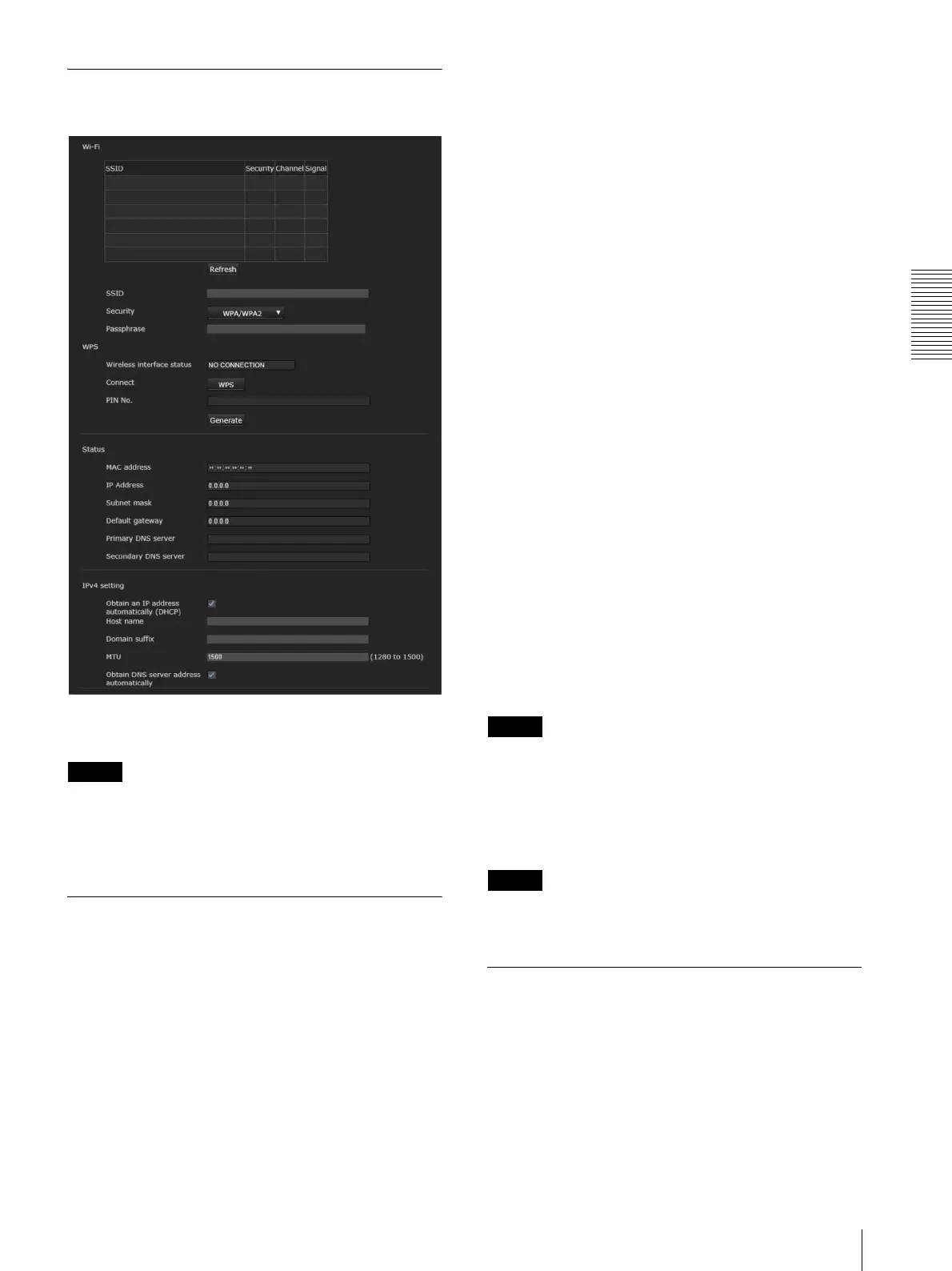 Sony SNC-VB640 - Wi-Fi Tab; Wi-Fi Network Connection Check; Manual Setting of a Wi-Fi Network