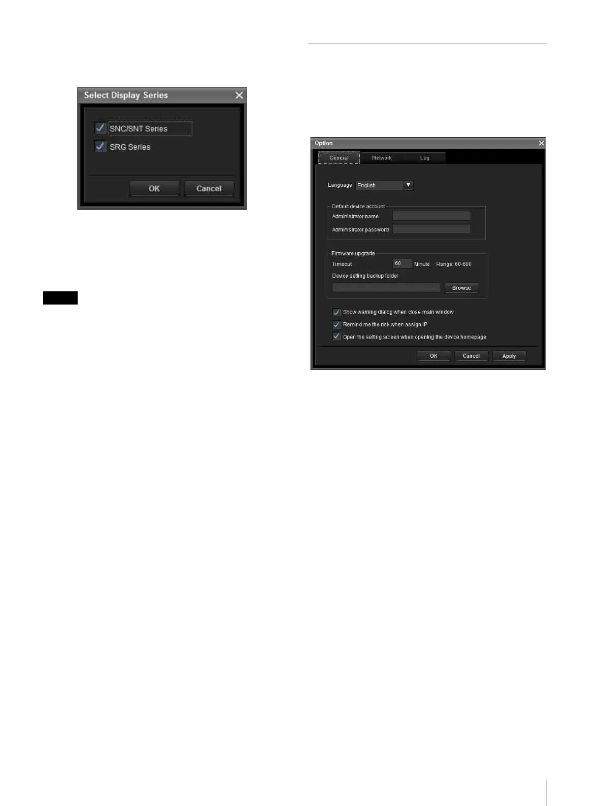 “Option” dialog. This dialog consists of three tabs: