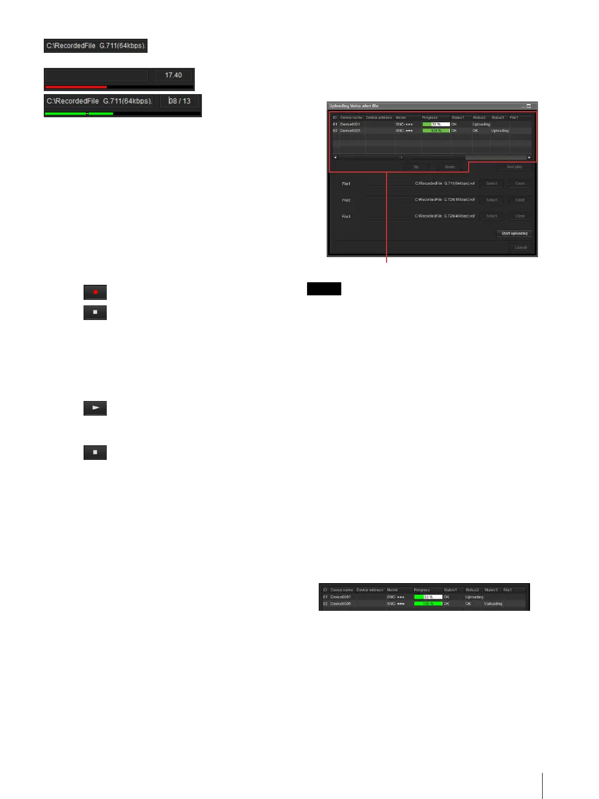 Uploading: The Voice alert file is being uploaded.