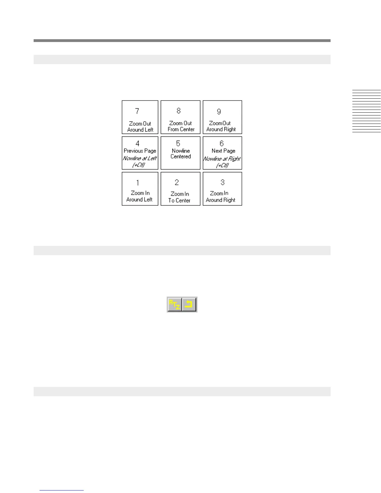 The numeric keypad can be used to access the anchored zoom commands and the paging commands.