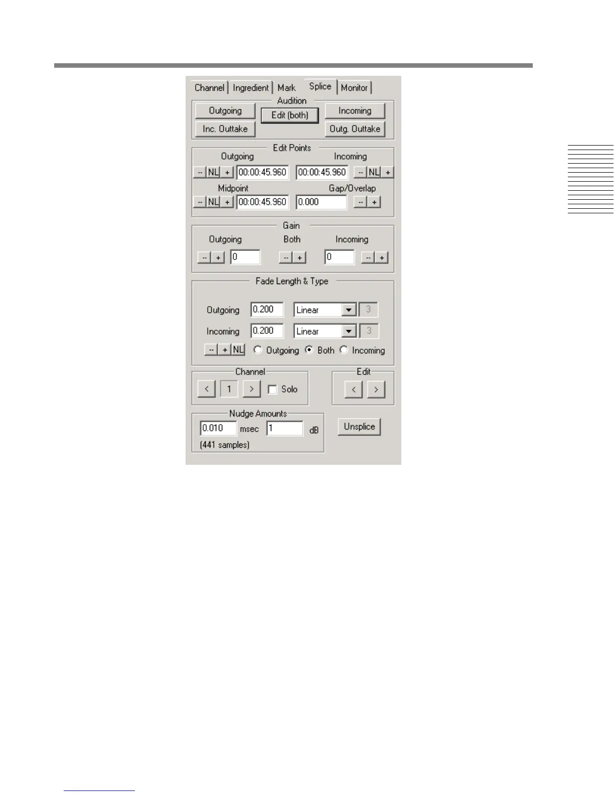 the actual splice fades are replaced by a 2 msec. fade.