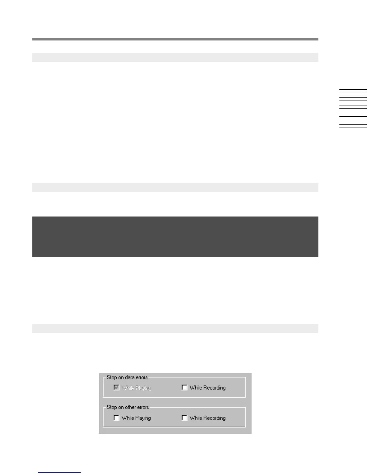 check boxes in the recording preferences window to set the program to stop on real time errors when