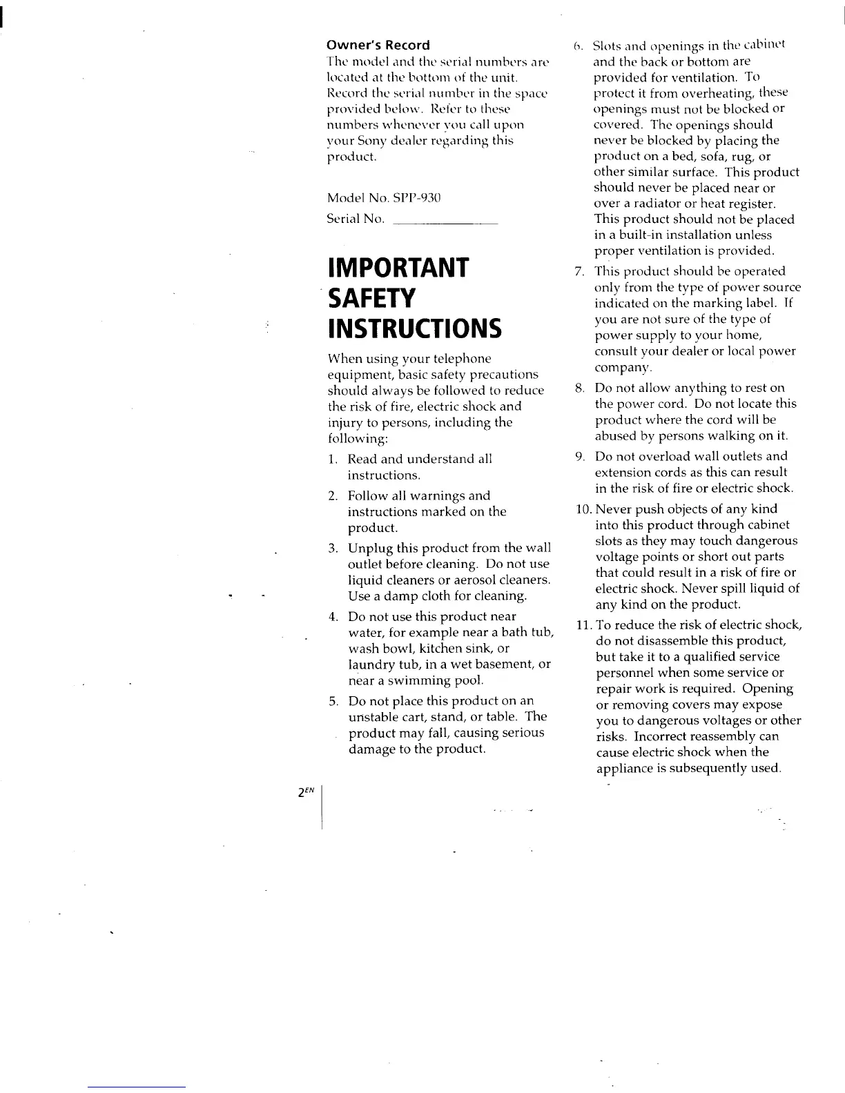 Sony SPP-930 Primary - Page 2