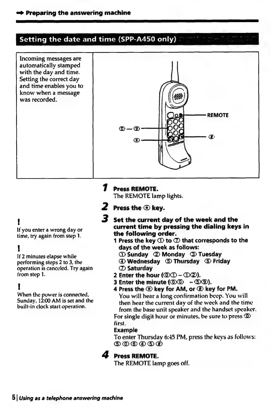 Sony SPP-A250 - Setting the Date and Time (SPP-A450 Only)