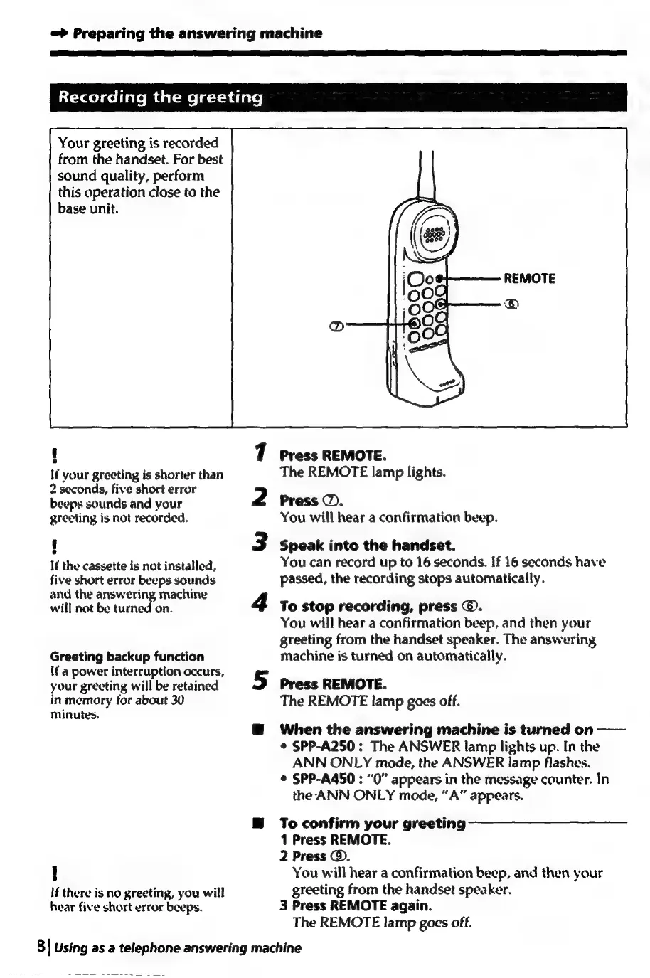 Sony SPP-A250 - Recording the Greeting