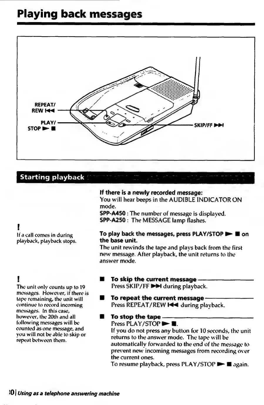 Sony SPP-A250 - Playing Back Messages; Starting Playback