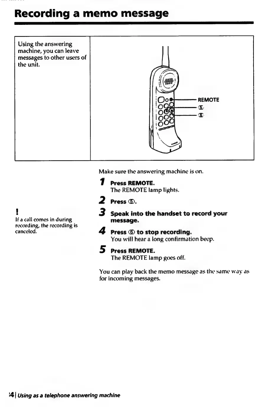 Sony SPP-A250 - Recording a Memo Message