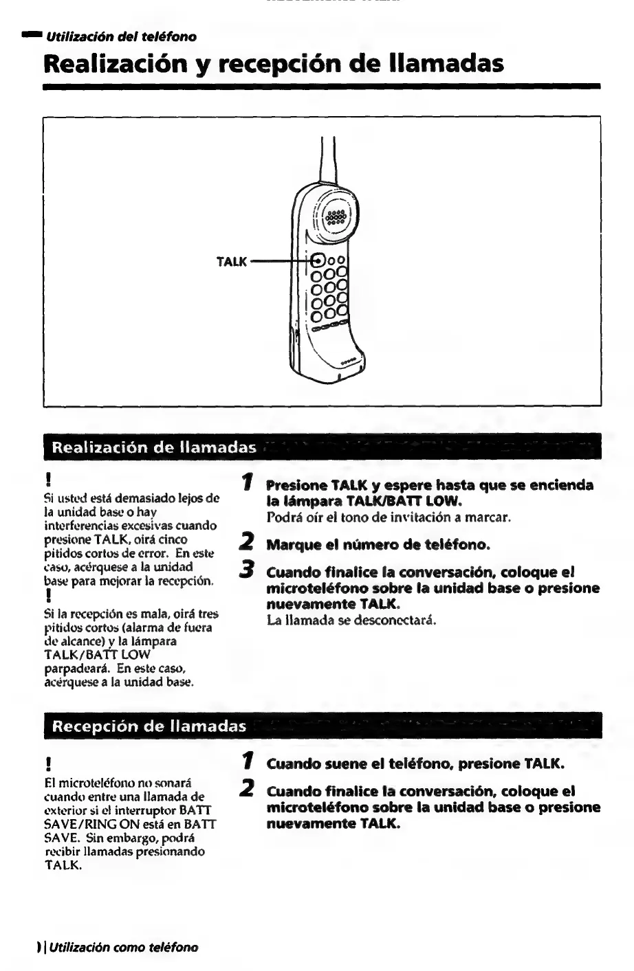 Sony SPP-A250 - Realizacion de Llamadas; Recepcidén de Llamadas; Utilizacién como Teléfono