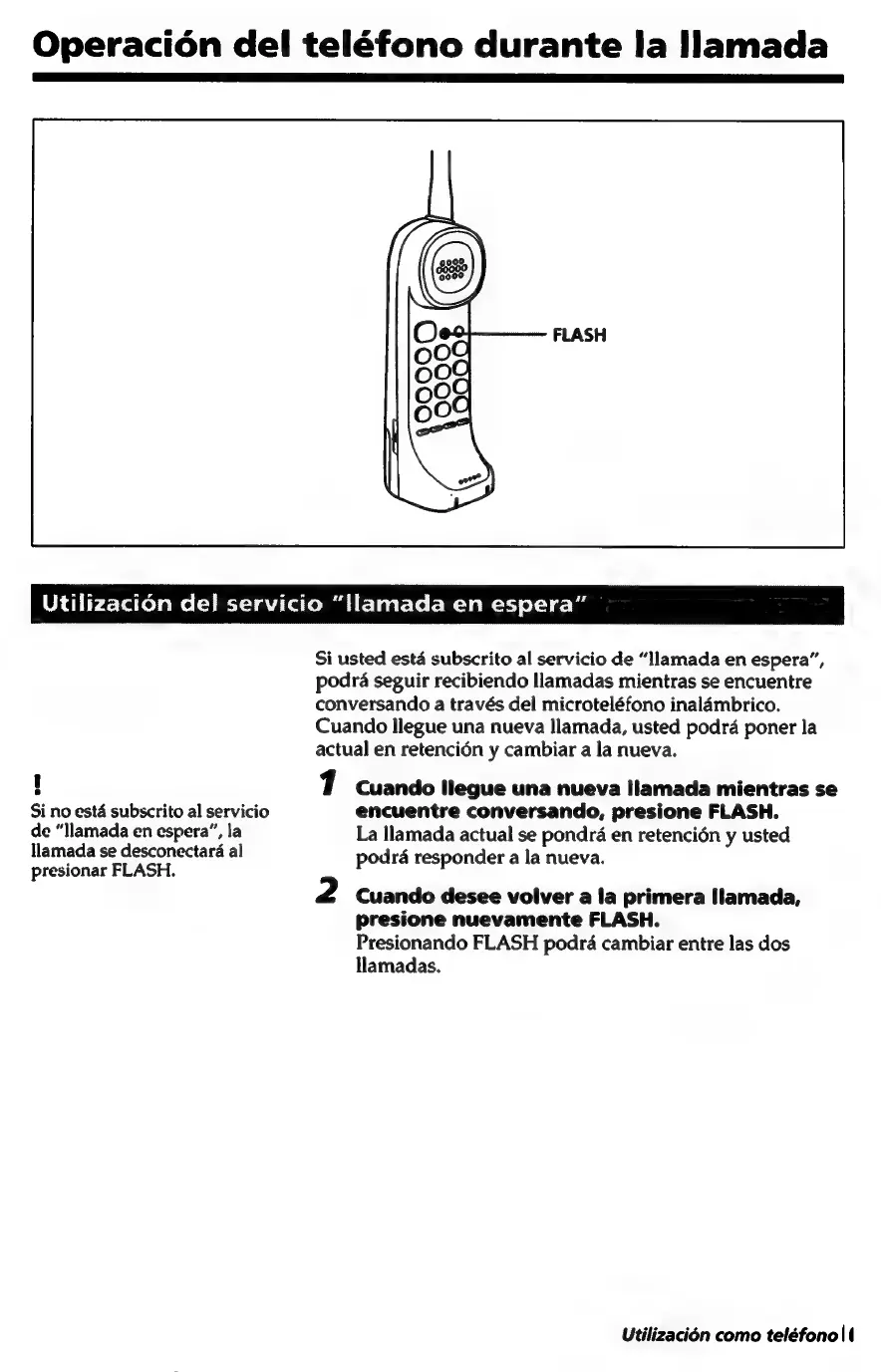Sony SPP-A250 - Operacién del Teléfono Durante la Llamada; Utilizacién como; Utilizacién del Servicio de Llamada en Espera