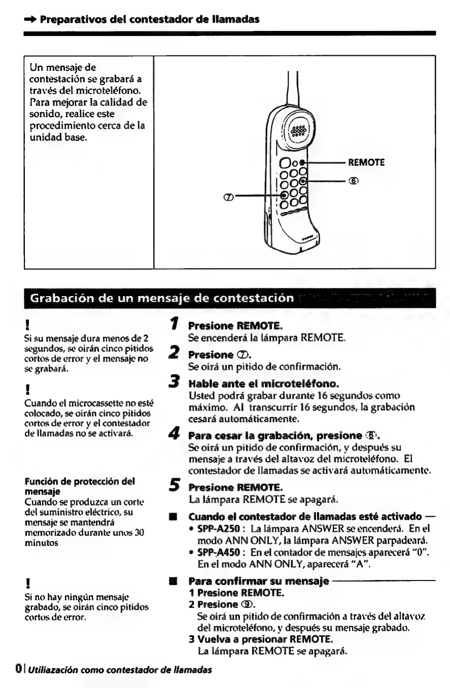 Sony SPP-A250 - Grabacién de un Mensaje de Contestacién