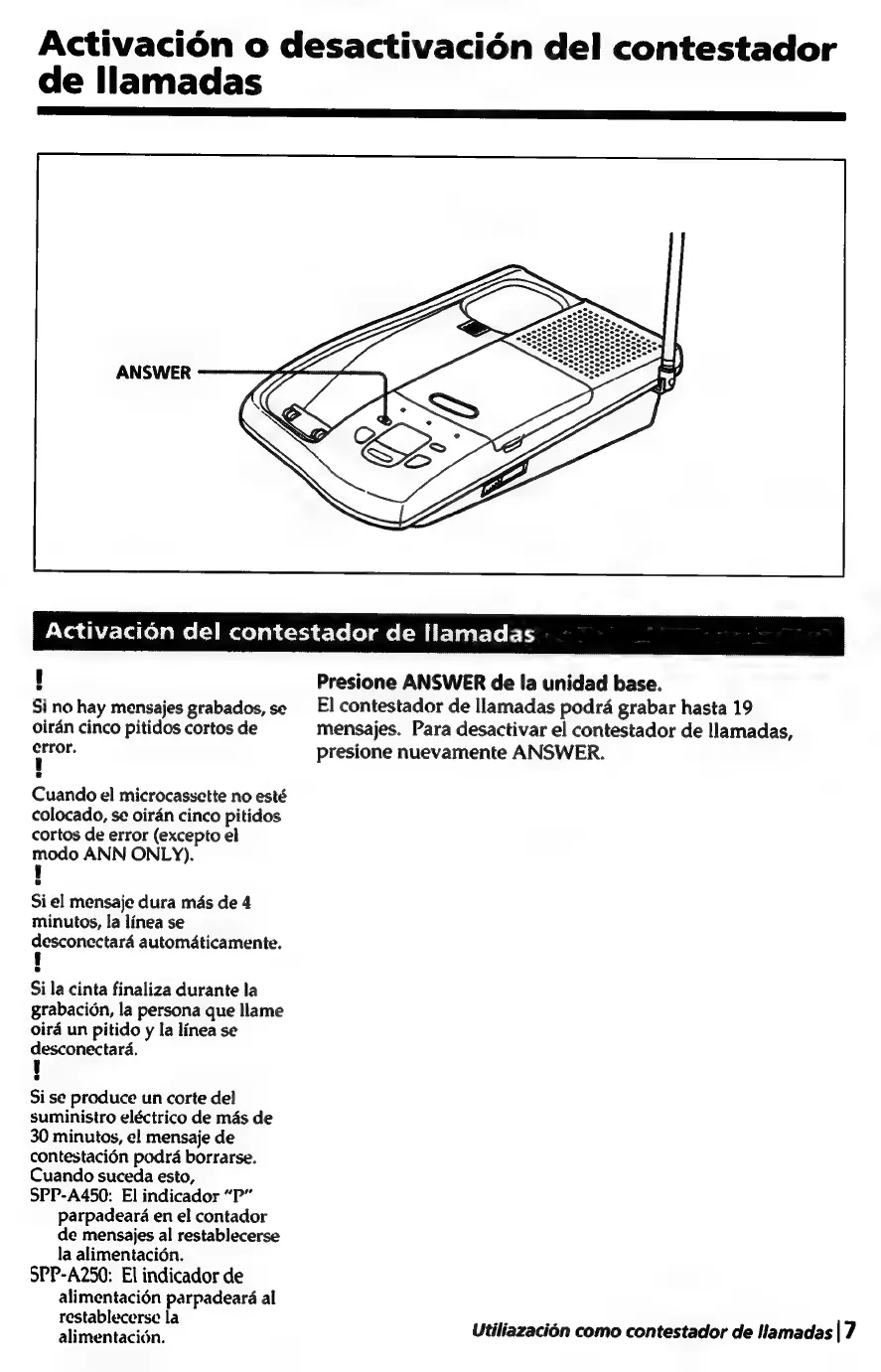 Sony SPP-A250 - Activacién O Desactivacién del Contestador de Llamadas
