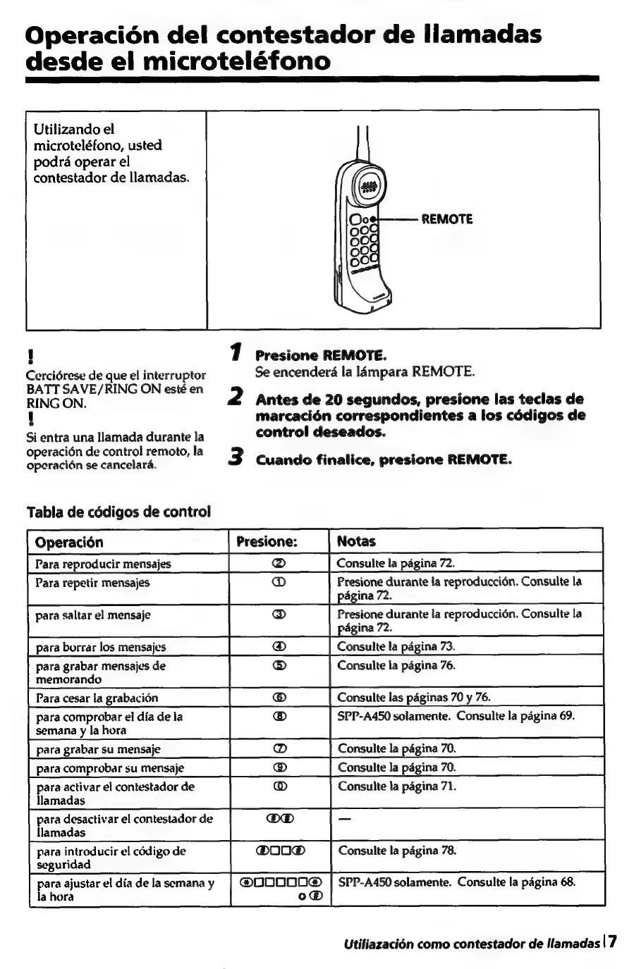 Sony SPP-A250 - Operacidén del Contestador de Llamadas desde el Microteléfono