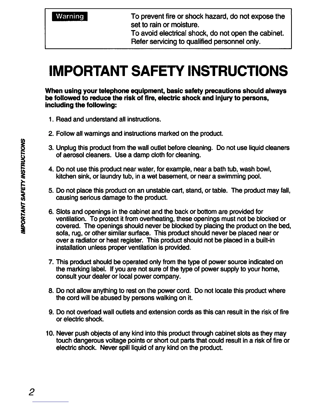 Sony SPP-A60 Primary - Important Safety Instructions