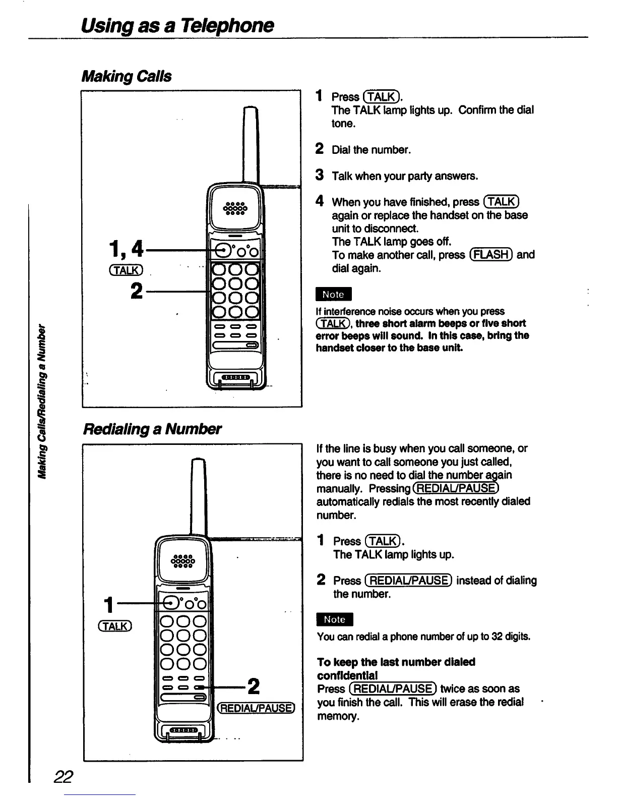 Sony SPP-A60 Primary - Using the Phone for Calls; Making and Redialing Calls