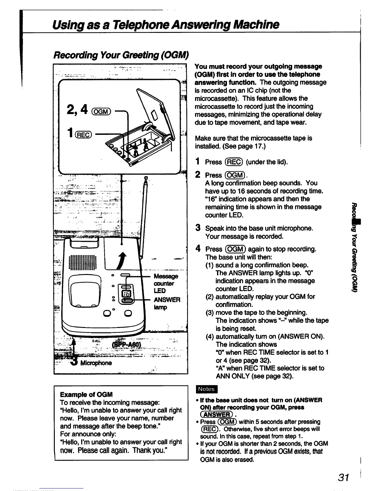 Sony SPP-A60 Primary - Answering Machine Operation; Recording Your Outgoing Greeting (OGM)