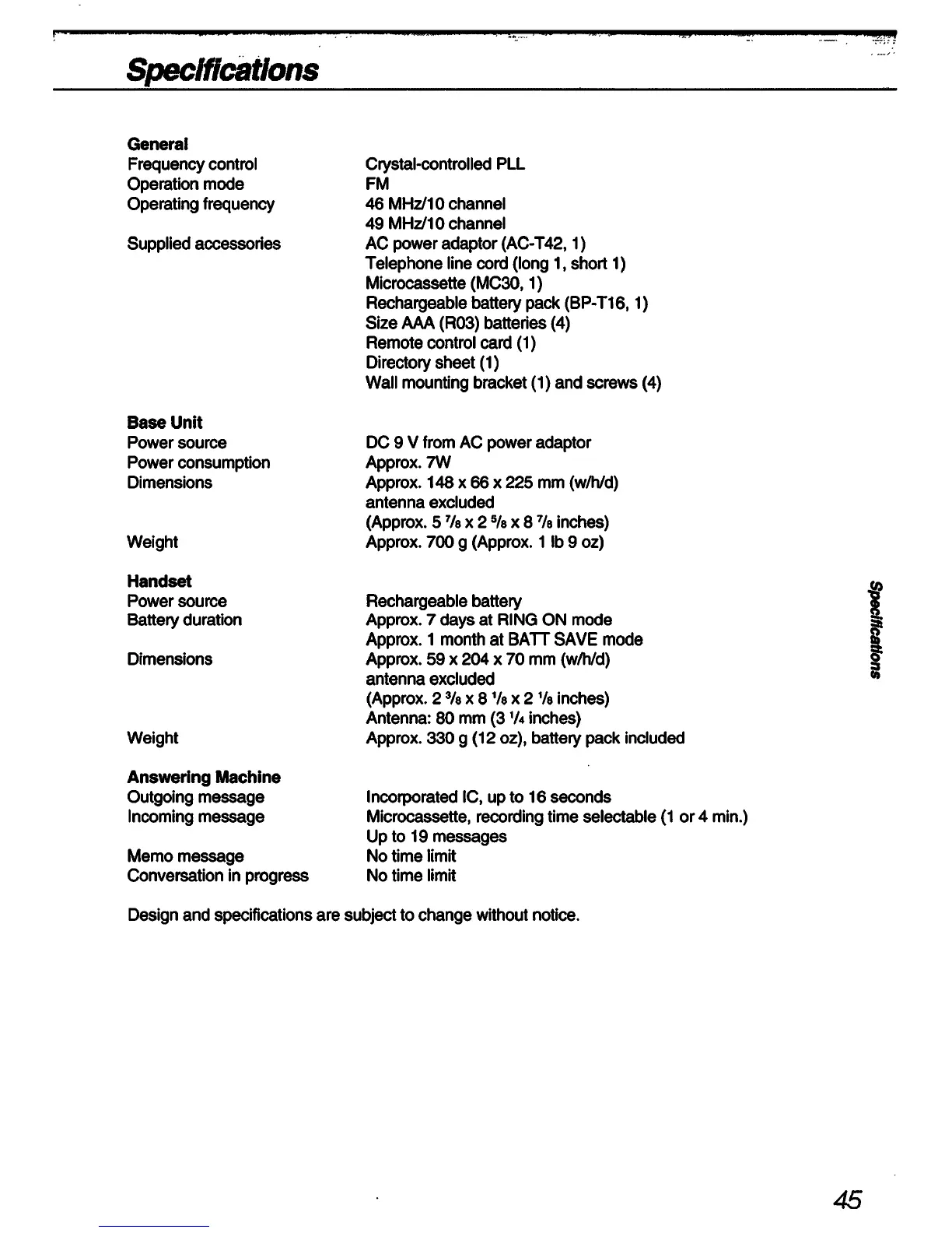 Sony SPP-A60 Primary - Technical Specifications