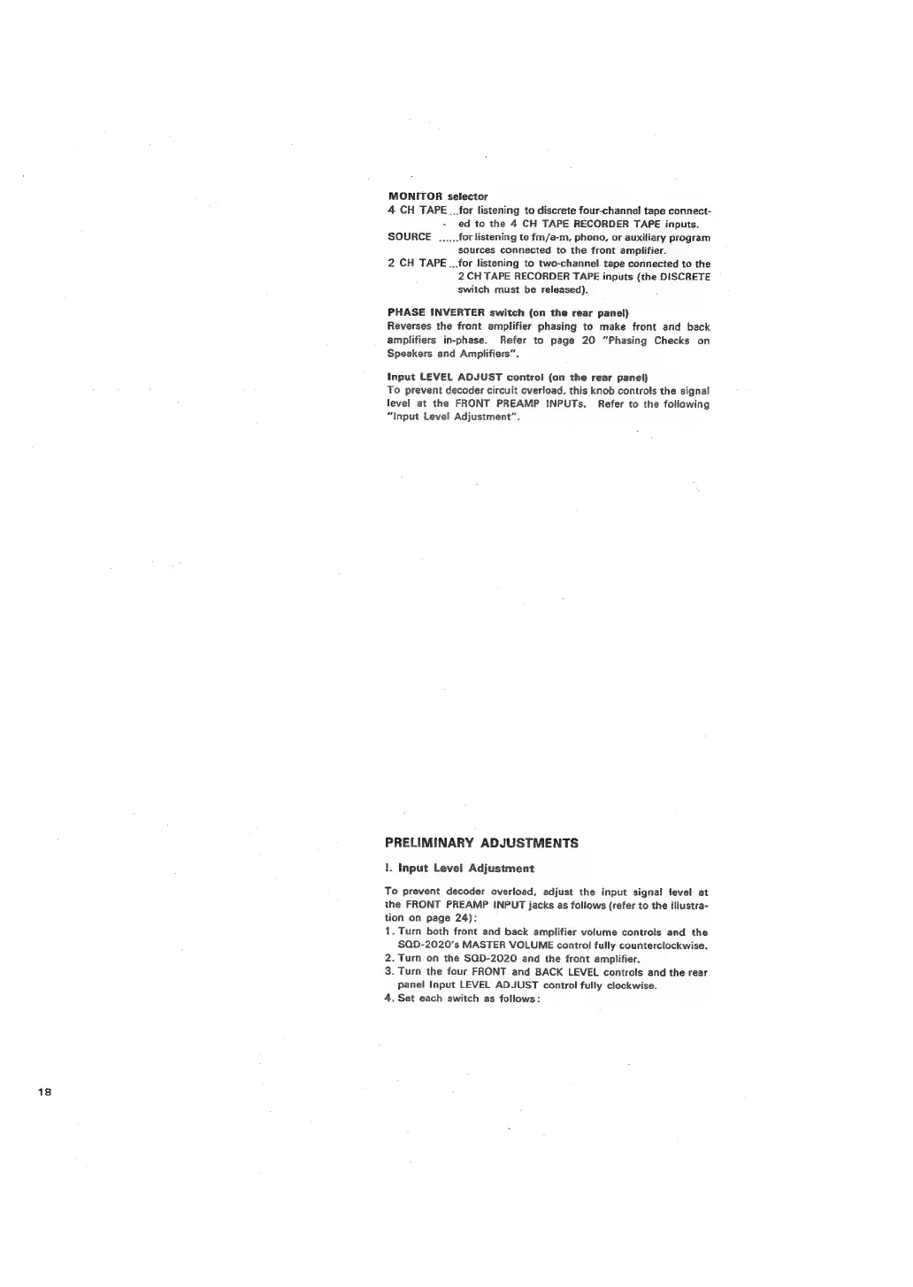 Sony SQD-2020 - PRELIMINARY ADJUSTMENTS