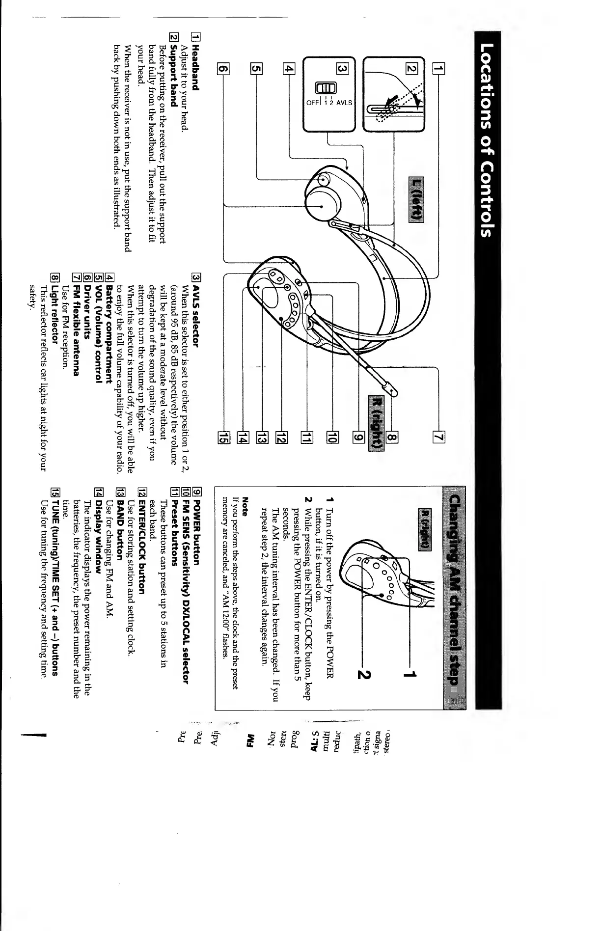 Sony SRF-HM22 - Locations of Controls; Headband and Support Band; Volume and Audio Controls; Reception and Antenna