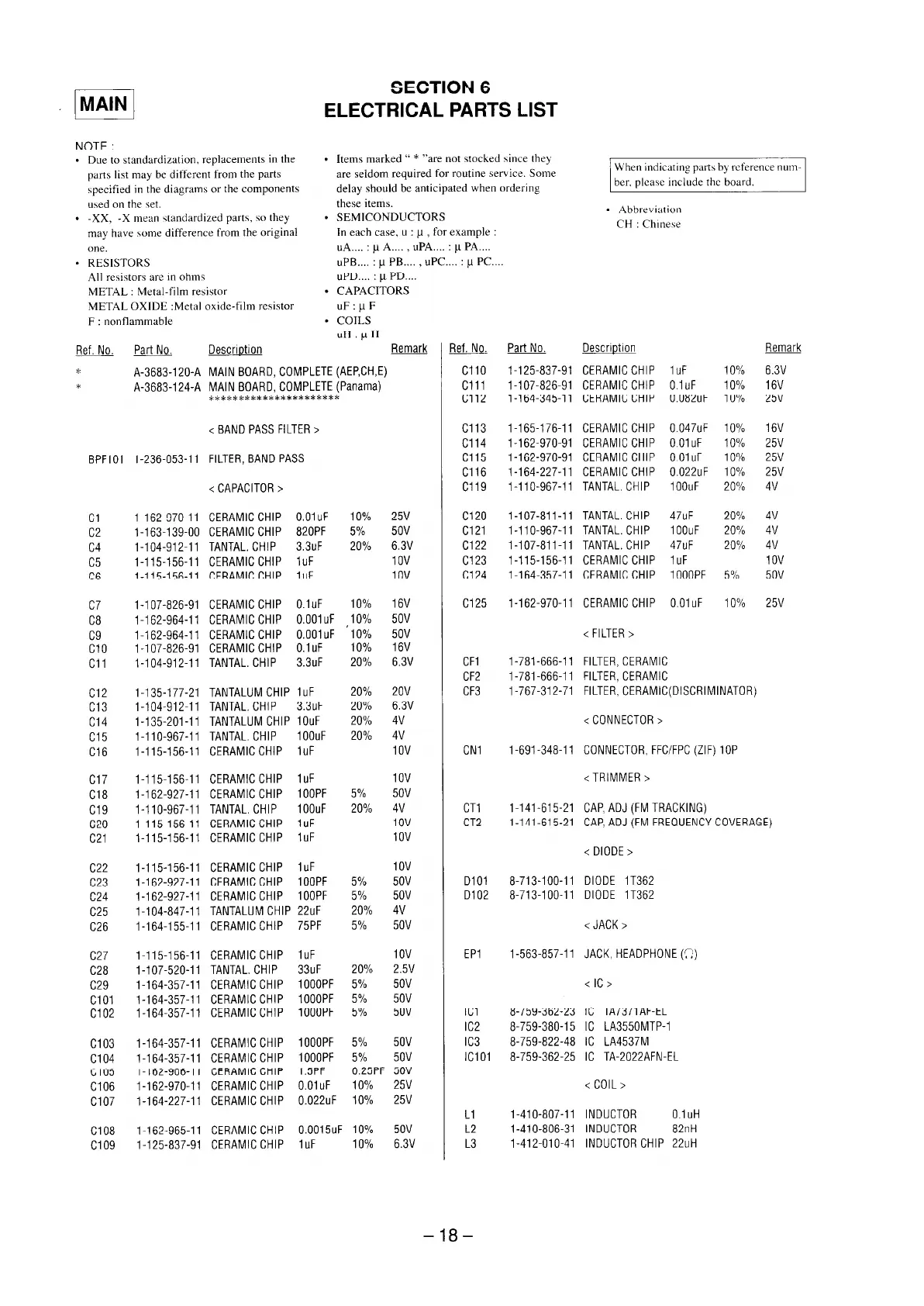 Sony SRF-M55 - Section 6 Electrical Parts List