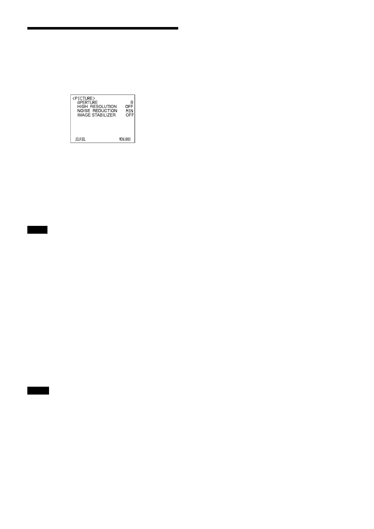 The PICTURE menu is used to set the items related to the