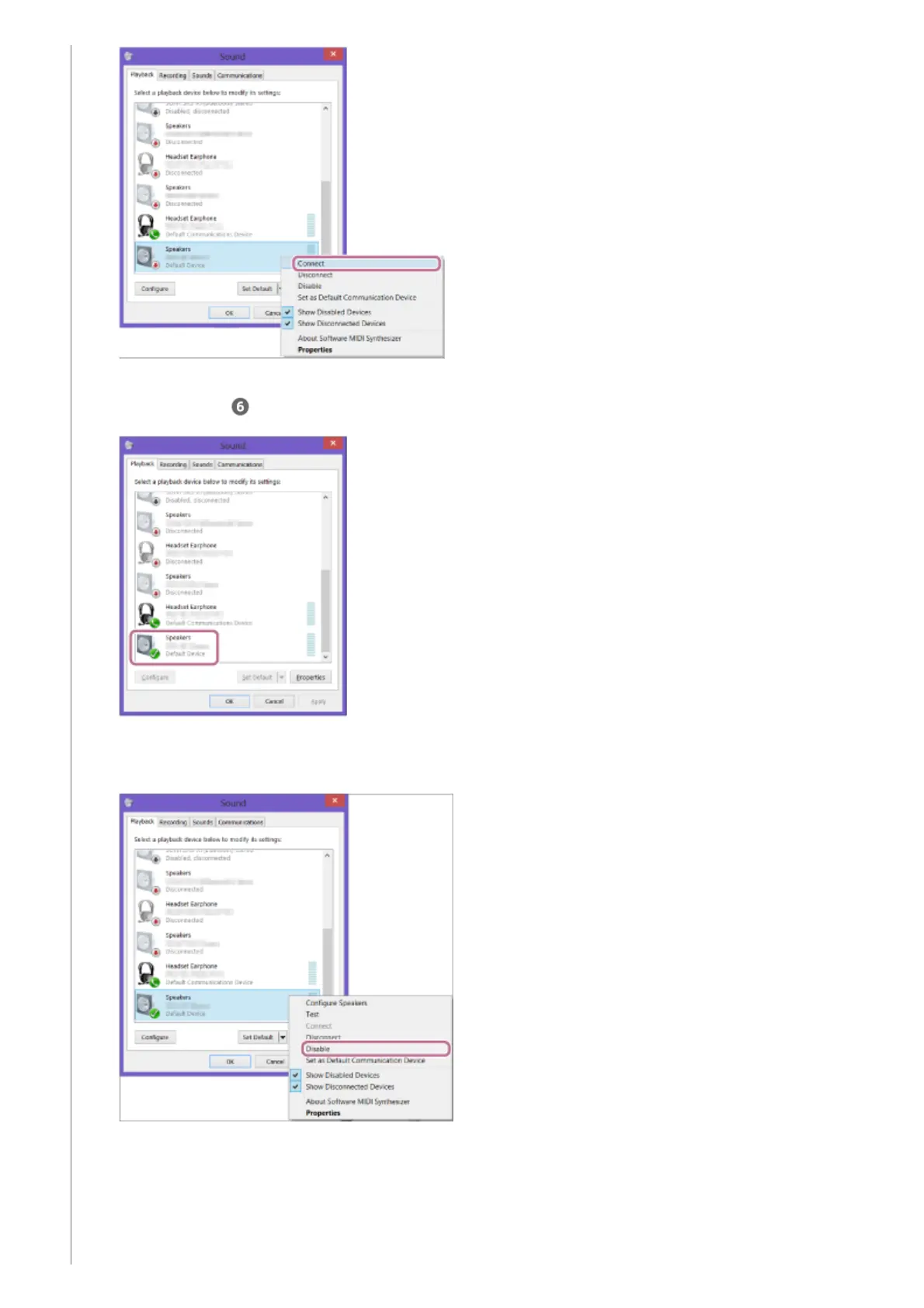 If you cannot click [Connect] for [SRS-XB21Stereo], select [Disable] for the [Default Device] that currently has a