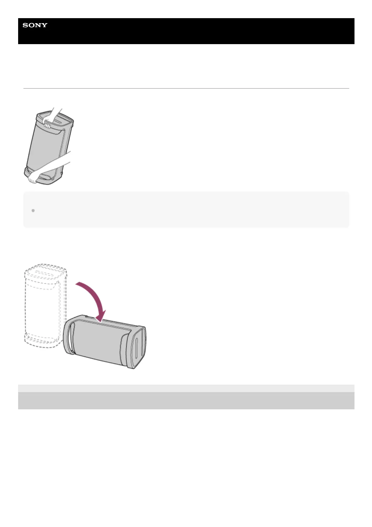 To avoid personal injury or damage to surrounding household goods, hold the speaker properly as illustrated above to carry the
