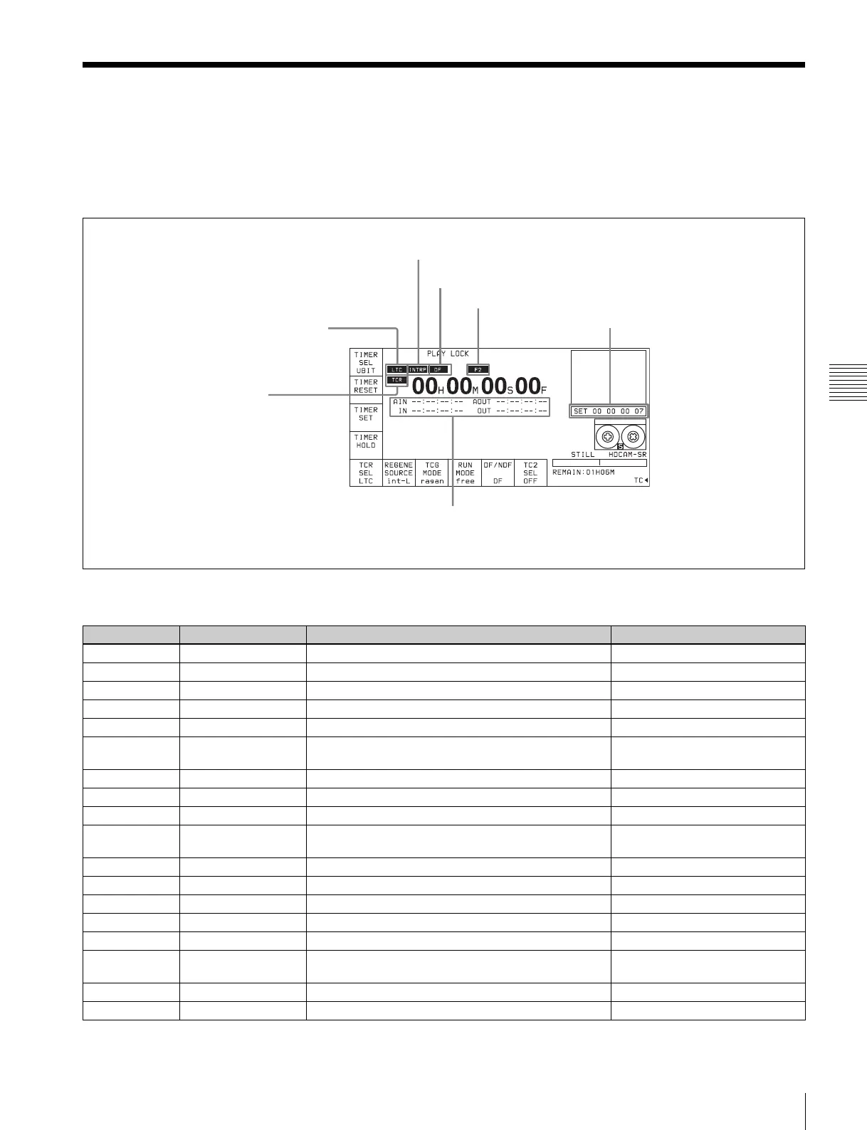 [F5] TCR SEL Sets the time code reader. VITC, auto, LTC