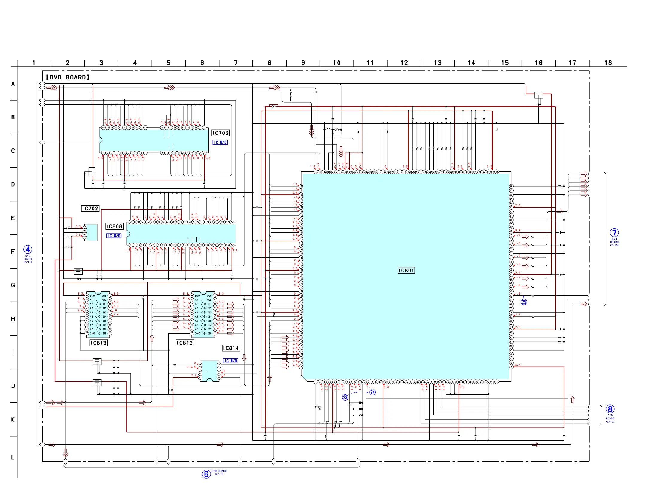 7-15. SCHEMATIC DIAGRAM – DVD Board (3/10) – • See page 71 for Waveforms. • See page 76 for IC Block Diagrams.