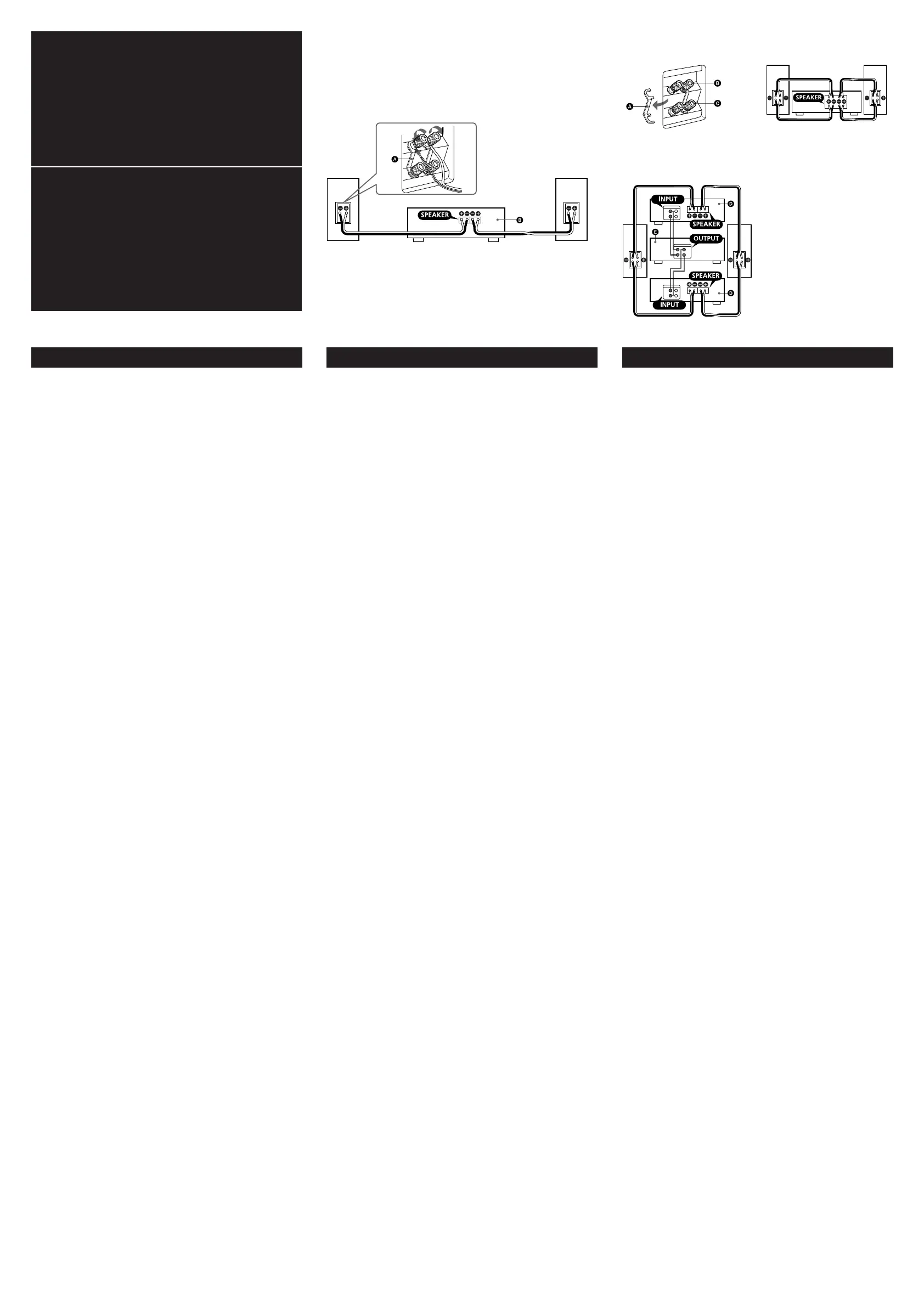 • 連接之前,請關閉放大器以免損壞揚聲器系統。