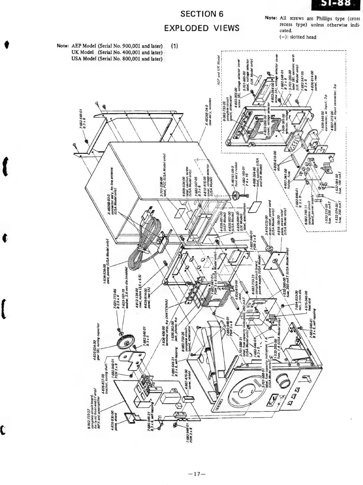 Sony ST-88 - Exploded Views: Overall Unit Breakdown; Component Breakdown Diagrams