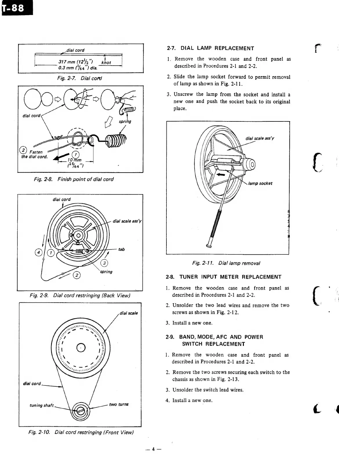 Sony ST-88 - Disassembly and Replacement: Minor Components; Dial Lamp and Input Meter Replacement; Switch Replacement Procedures