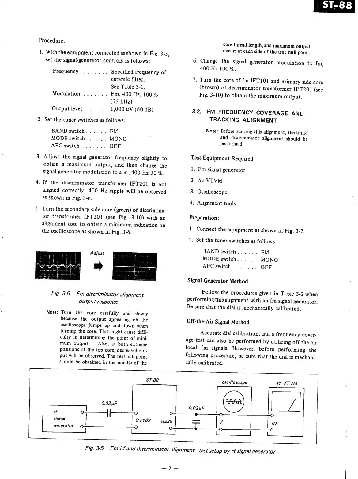 Sony ST-88 - FM Alignment: Frequency and Tracking; Frequency and Tracking Alignment Procedures; FM Frequency Alignment Test Equipment and Preparation; FM Frequency Alignment Methods