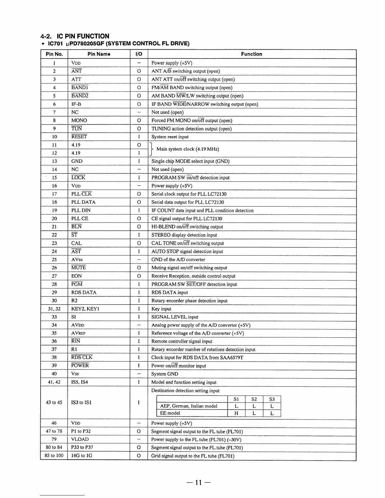 Sony ST-SA3ES - IC PIN Function