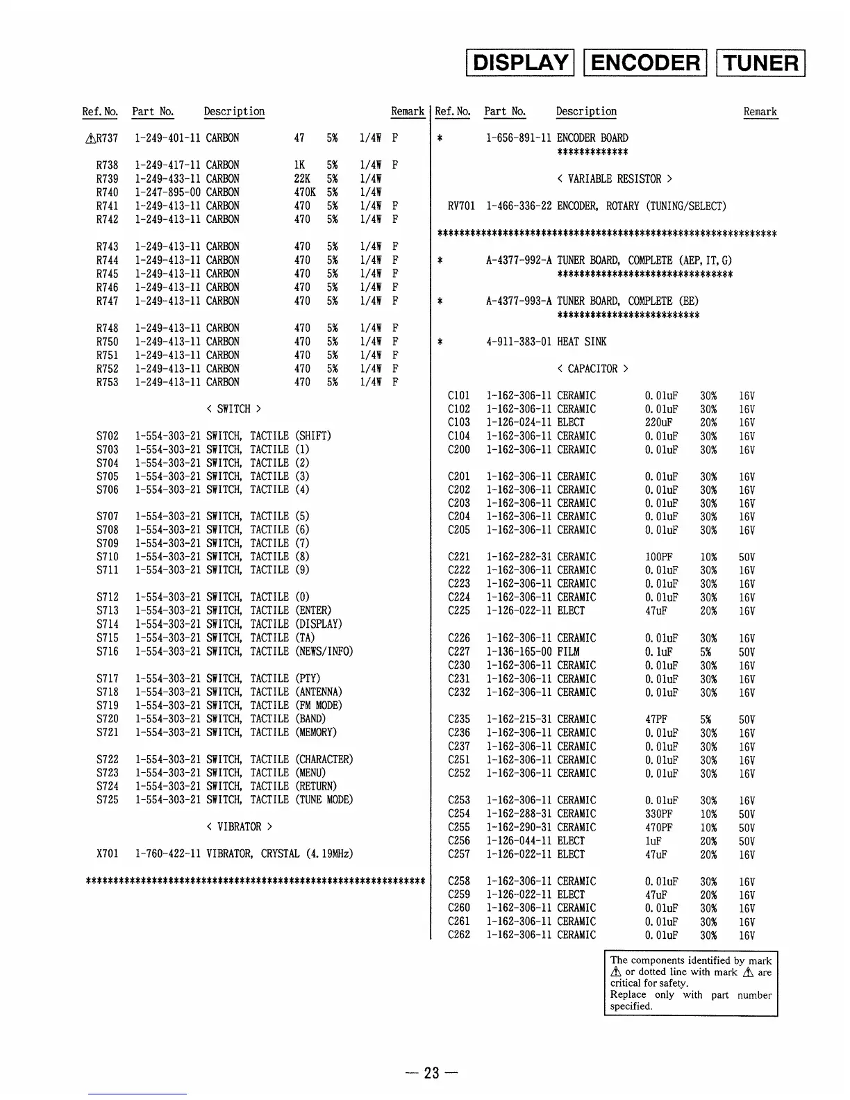 Sony ST-SA3ES - Resistors and Capacitors List