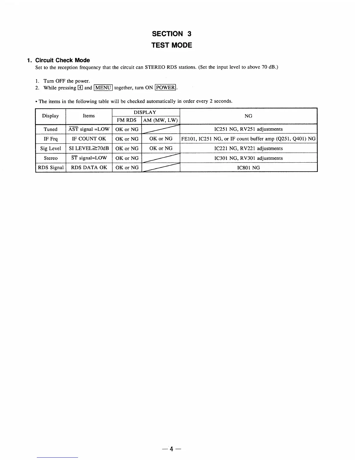 Sony ST-SA3ES - Section 3 Test Mode; Circuit Check Mode Procedure