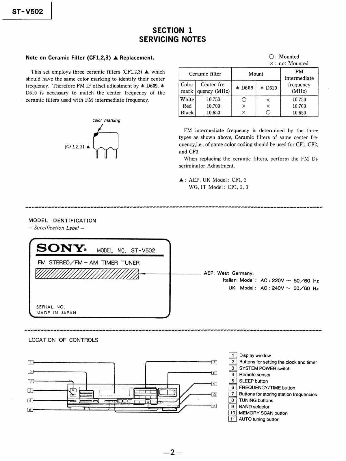 Sony ST-V702 - Section 1 Servicing Notes